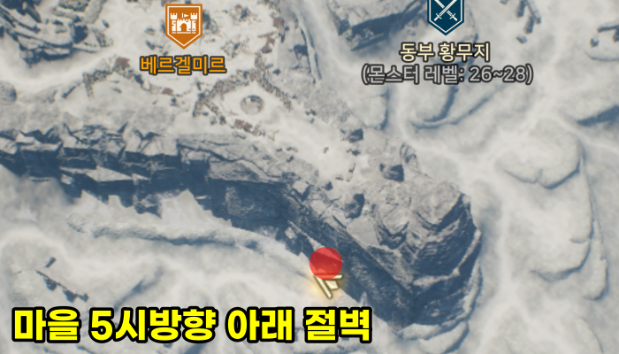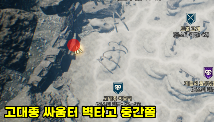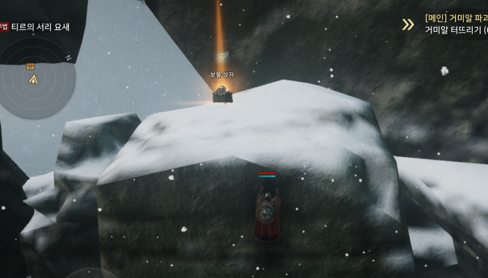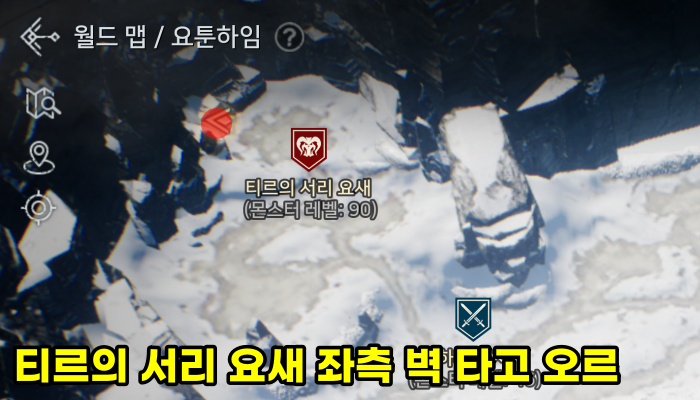 티르의 서리 요새에서 11시 방향으로 쭉 이동하다가 만나는 벽을 타고 올라가면 역시나 보물 상자가 반겨줍니다.