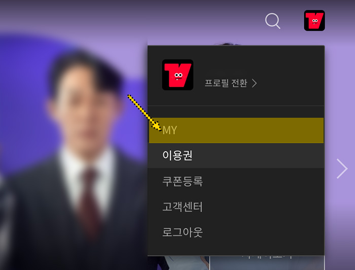 모바일 티빙 앱에서 이용권 자동결제 해지하는 방법